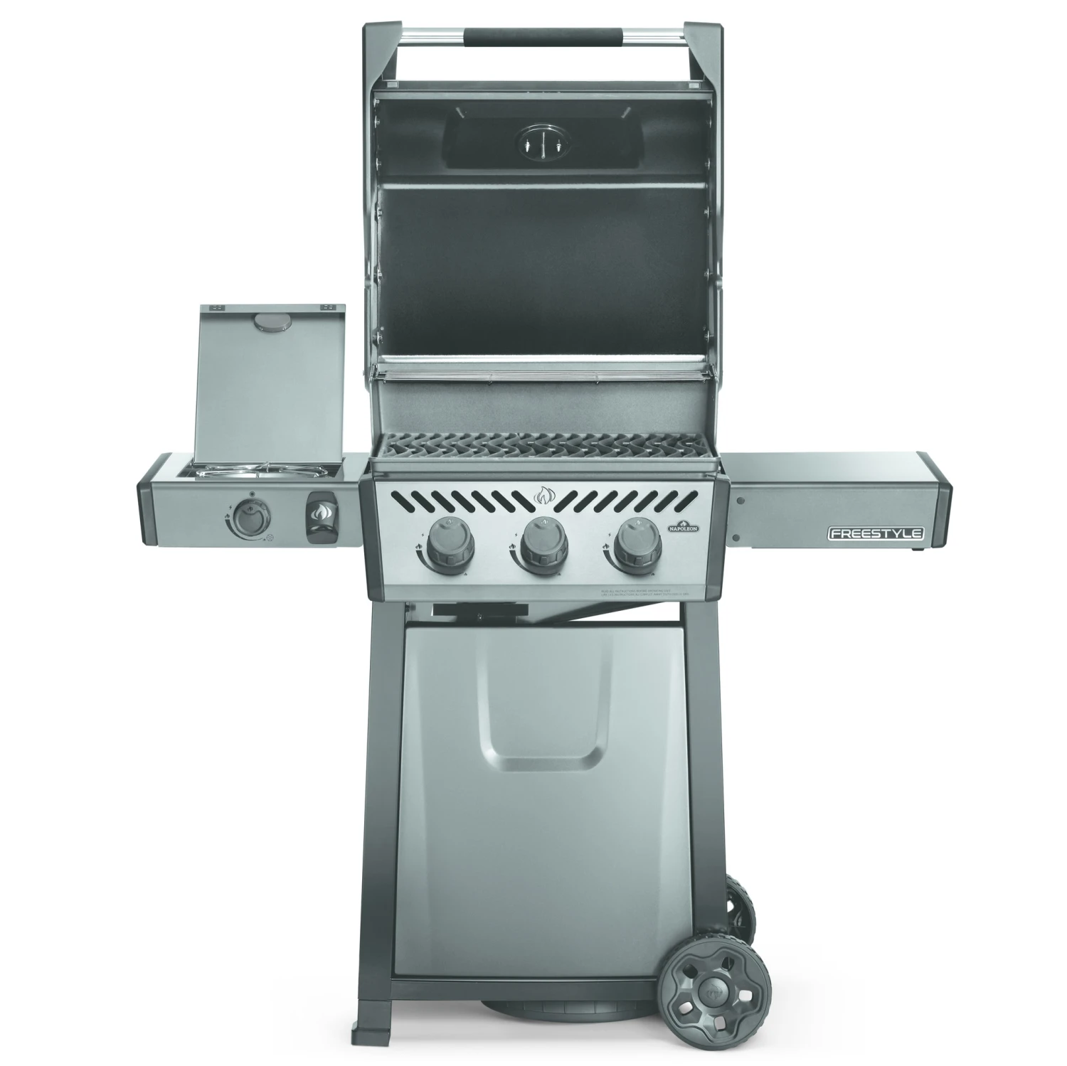 De Freestyle 365 propaangasbarbecue met aparte zijbrander is een compacte grill met premium functies en een onklopbare prijs. Met betrouwbare JETFIRE-ontsteking waarmee de hoofdbranders probleemloos met een eigen, krachtige ontstekingsvlam worden aangestoken. Schroei het vlees perfect dicht boven de gietijzeren grillroosters met porseleincoating. Drie RVS branders bieden gelijkmatige warmte die eenvoudig geregeld kan worden en gecontroleerd met de ingebouwde thermometer. Bereid bijgerechten tijdens het grillen met de aparte zijbrander Dankzij de robuuste wielen kan deze barbecue overal naartoe worden gereden, waar hij maar nodig is, terwijl de eenvoudig inklapbare zijtafels met gereedschapshouders en flessenopener ervoor zorgen dat de Freestyle bij uw levensstijl en ruimte past.