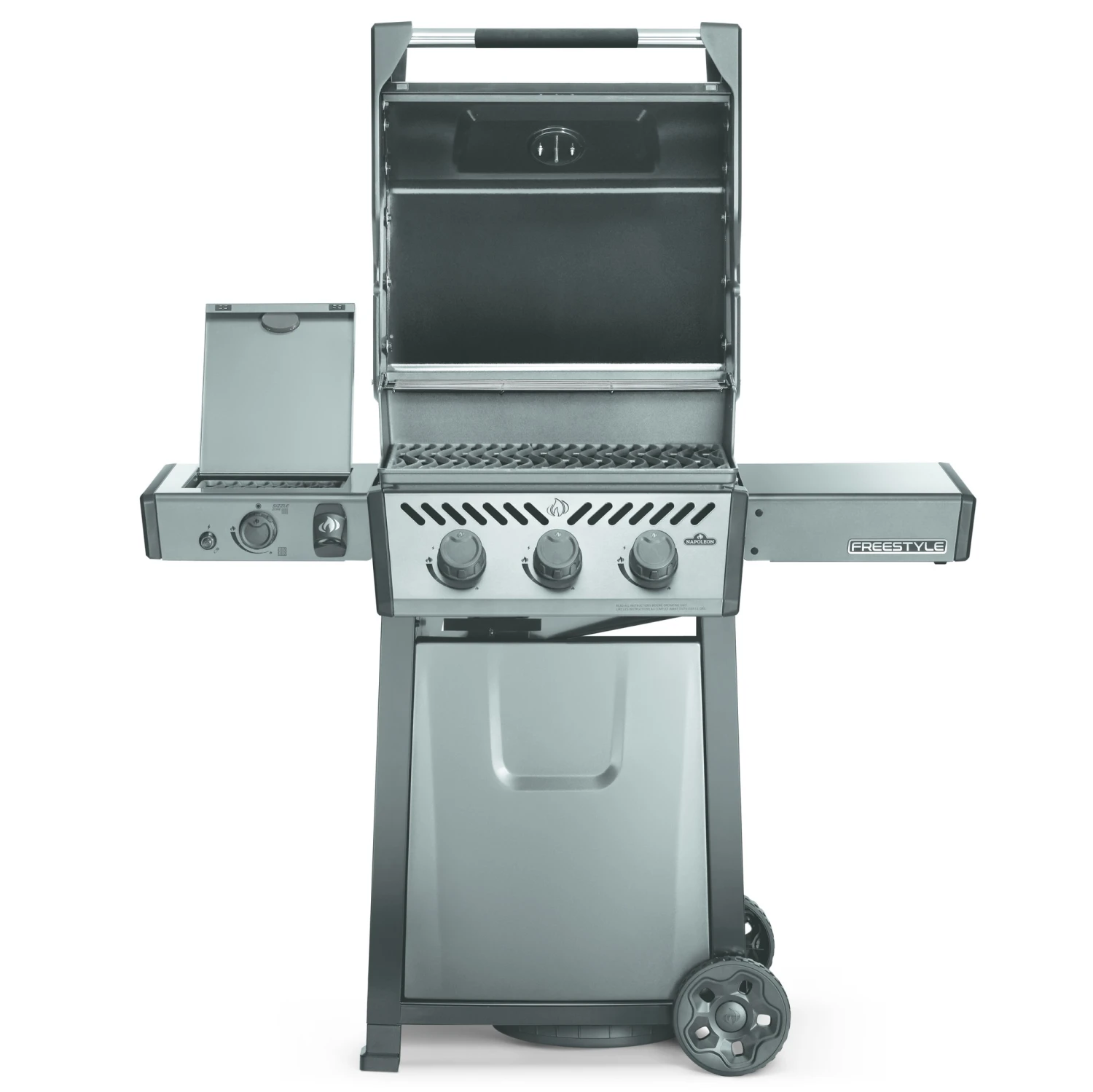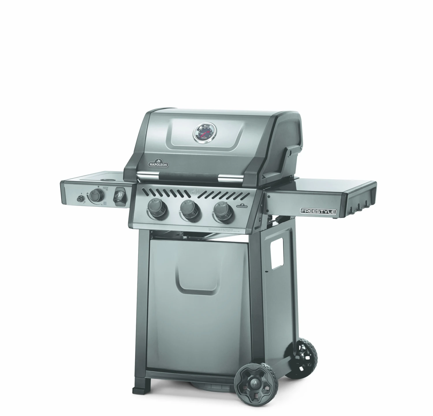 De Freestyle 365 propaangasbarbecue met SIZZLE ZONEâ„¢ infrarood zijbrander is een compacte grill met premium functies en een onklopbare prijs. Met betrouwbare JETFIRE-ontsteking waarmee de hoofdbranders probleemloos met een eigen, krachtige ontstekingsvlam worden aangestoken. Schroei het vlees perfect dicht boven de gietijzeren grillroosters met porseleincoating. Vier RVS branders bieden gelijkmatige warmte die eenvoudig geregeld kan worden en gecontroleerd met de ingebouwde thermometer. Schroei etenswaren dicht alsof het in een restaurant is gedaan of bereid zijgerechten tijdens het grillen met de infrarode zijbrander en het aanzetstation. Dankzij de robuuste wielen kan deze barbecue overal naartoe worden gereden, waar hij maar nodig is, terwijl de eenvoudig inklapbare zijtafels met gereedschapshouders en flessenopener ervoor zorgen dat de Freestyle bij uw levensstijl en ruimte past.