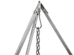 Er worden kettingen bijgeleverd. Zo kan je aan de kettingen een rooster of bakplaats aan de driepoot ophangen.